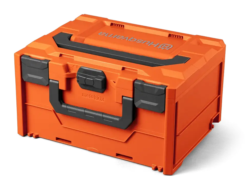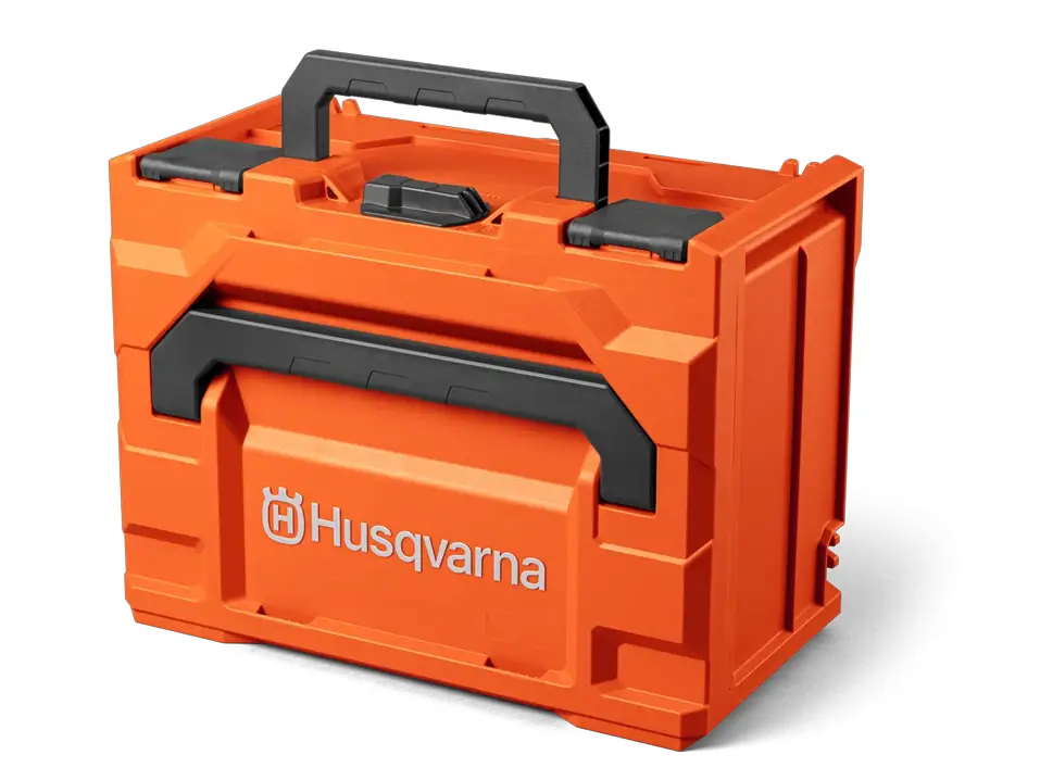 Poignées ergonomiques placées à l’avant et sur le dessus pour une manipulation facile. La conception bien pensée permet d’empiler plusieurs boîtes et en ajoutant la plaque multi-adaptateur Husqvarna (vendu séparément), la boîte peut également être connectée à des systèmes de boîtiers tiers.