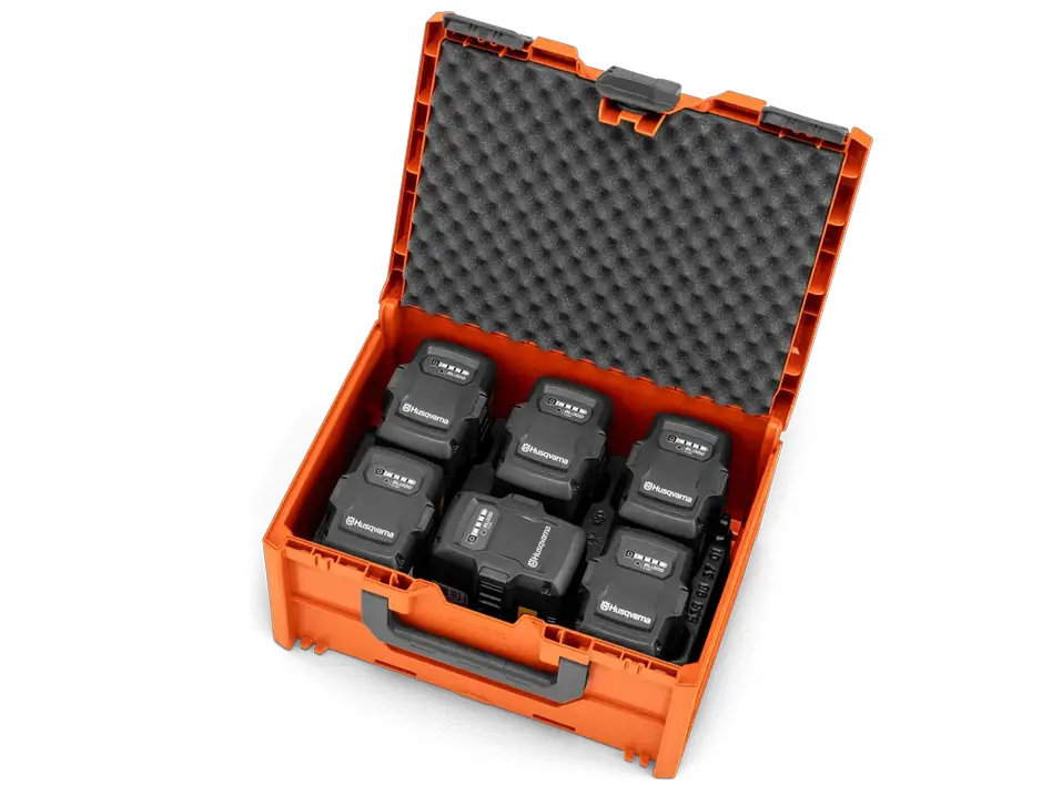 Le Boîtier de batterie L Husqvarna est une mallette robuste et pratique pour le transport et le stockage de jusqu’à 6 batteries lithium-ion Husqvarna 36 V taille L*.
