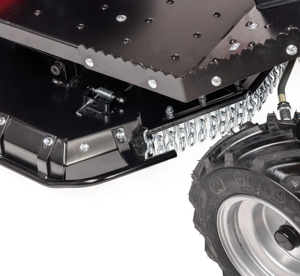 Outre ses performances techniques, cette débroussailleuse autoportée 4X4 a été pensée pour offrir un confort d’utilisation optimal. Son châssis robuste, combiné à un centre de gravité bas ainsi que ses larges roues crantées de type agricole, assurent une stabilité accrue, même sur des terrains difficiles. De plus, ses freins mécaniques à disque et son embrayage de coupe électromagnétique renforcent la sécurité de l’opérateur, lui permettant de travailler en toute sérénité.