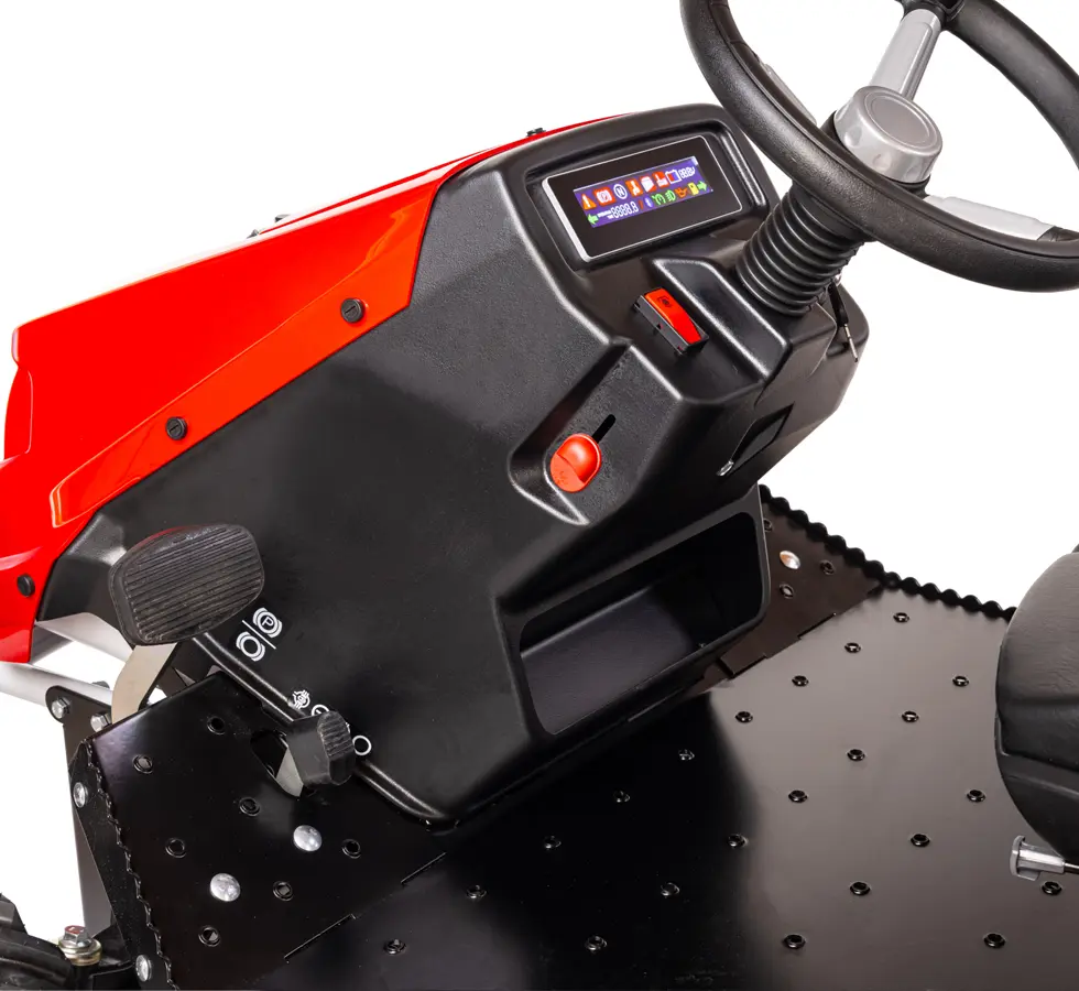 Pour faciliter son utilisation, un écran numérique regroupe les informations et commandes importantes, de même les leviers moteurs sont rassemblés d’un même côté et propose un régulateur de vitesse, allié idéal pour traiter les pelouses de grandes surfaces ou maintenir une allure sur des pentes scabreuses.