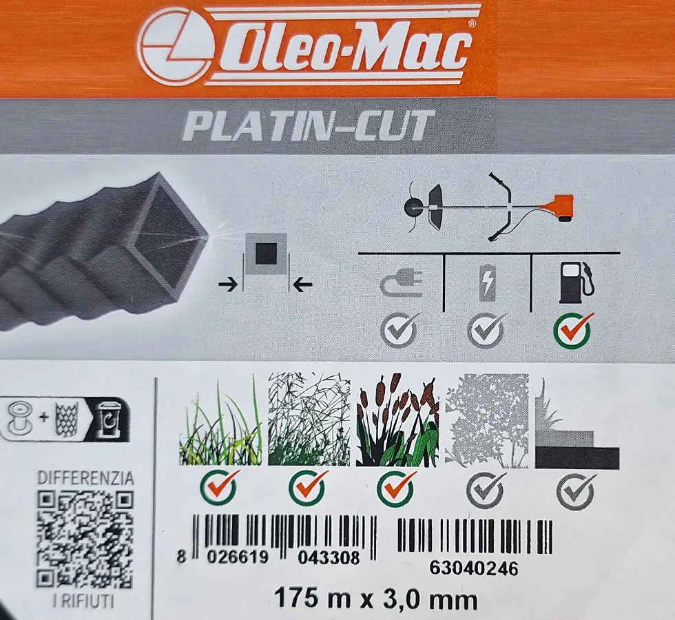 Le fil nylon carré Oleo-Mac Platin-Cut de 3 mm de diamètre et 175 mètres de longueur est un consommable de haute qualité pour débroussailleuses. Sa forme carrée offre une coupe nette et agressive, idéale pour les herbes épaisses et les broussailles. Conçu pour une durabilité maximale, ce fil résiste à l’usure et aux chocs, assurant une performance constante et fiable.