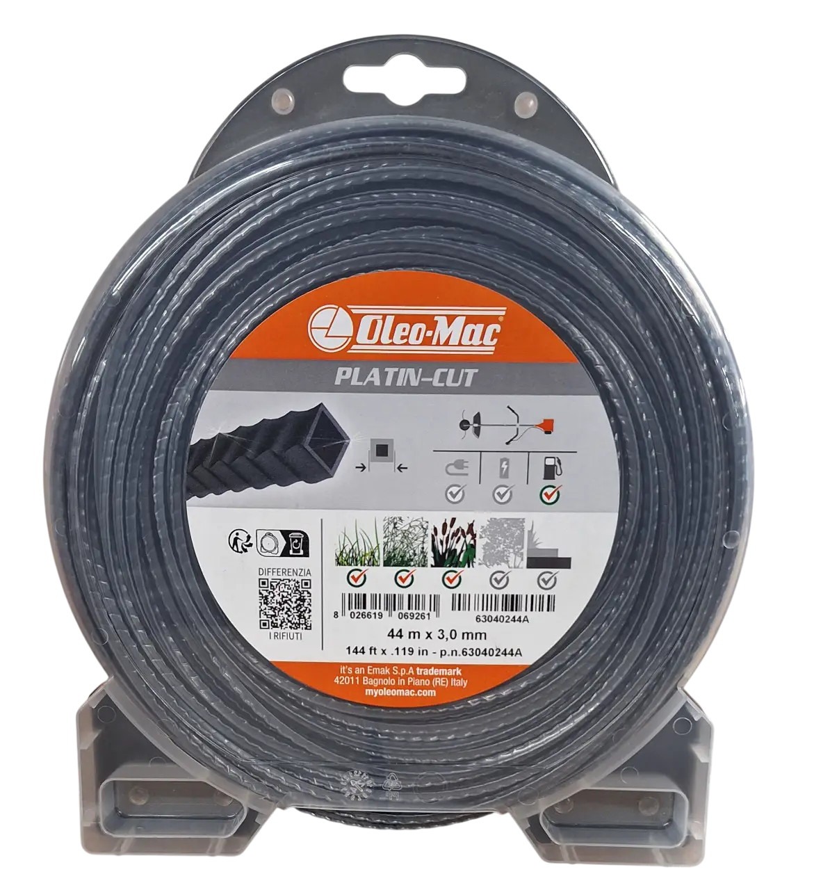 Fil nylon Oleo-Mac, diamètre 3 millimètres, Profil Carré ondulé en rouleau 44 m.
