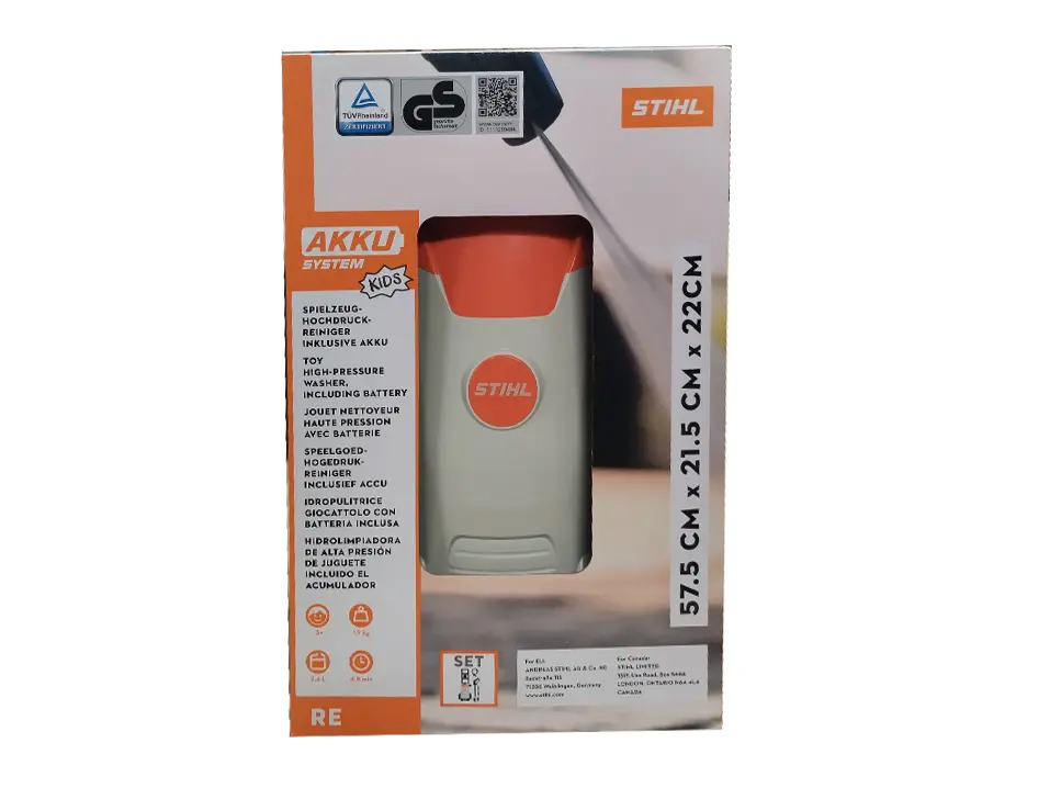 Le jouet nettoyeur haute-pression avec batterie de Stihl est une réplique miniature et réaliste des célèbres nettoyeurs haute-pression RE de Stihl, conçue spécialement pour les enfants. Idéal pour les petits amateurs de bricolage et d’entretien extérieur, ce jouet leur permet de s’amuser tout en reproduisant les gestes des adultes. Doté d’un design fidèle aux modèles professionnels et de fonctionnalités ludiques, il constitue un excellent moyen pour les enfants d’apprendre en jouant et de découvrir les équipements utilisés dans les métiers de la motoculture.