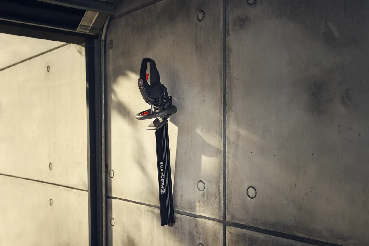 Remisage compact : Naturellement compacts et légers, les outils Husqvarna Aspire™ sont encore moins encombrants grâce à des pièces réglables, repliables, rétractables ou amovibles, pour un remisage et un transport faciles dans les espaces exigus comme les petits hangars ou les voitures. Grâce au crochet sur mesure inclus dans chaque emballage, vous pouvez choisir de les accrocher directement au mur ou de les suspendre à notre rail de remisage mural, qui fait partie du système de remisage Aspire™ Husqvarna. Accessoire de rail vendu séparément.