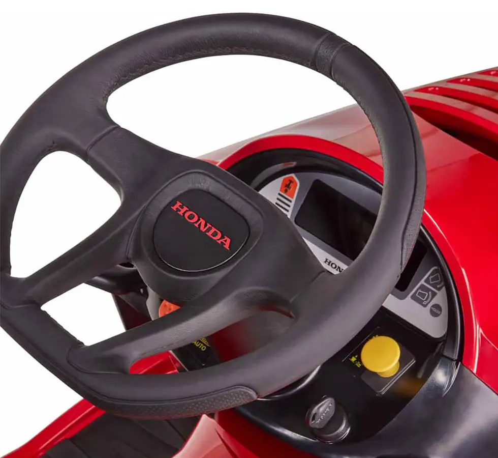 Le confort est un point fort du Tracteur tondeuse Honda, pensé pour un usage prolongé. Le siège ergonomique est réglable et rembourré pour s’adapter à toutes les morphologies. Le tableau de bord numérique fournit en temps réel les données clés : niveau de carburant, heures de fonctionnement, état du bac, etc. Le volant à prise souple et le faible rayon de braquage (1,8 m) rendent la conduite fluide et les manœuvres aisées, même autour des massifs ou obstacles.