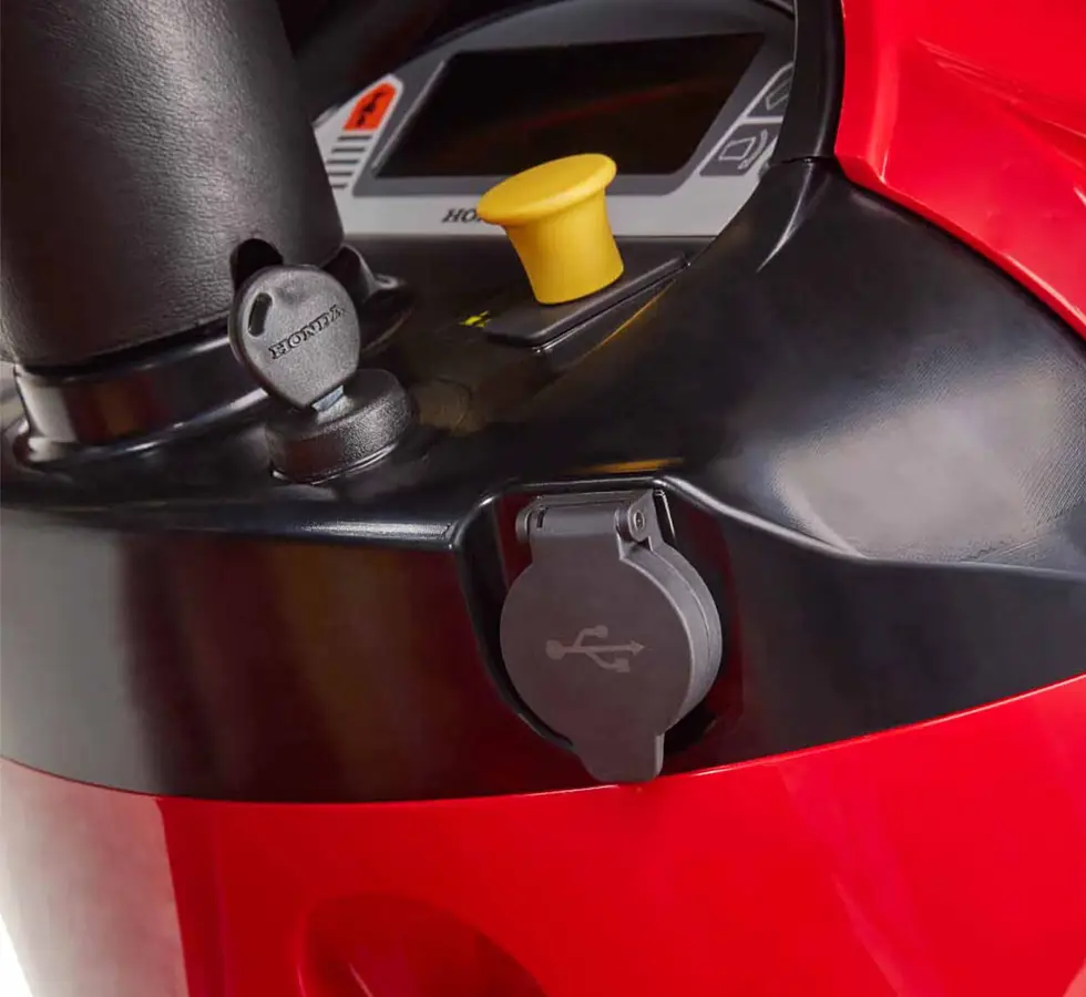 Côté sécurité, Honda équipe ce modèle d’un système de présence au siège, d’un frein de stationnement performant et d’une commande de coupe sécurisée. L’éclairage LED haute intensité permet de travailler même en fin de journée ou par faible luminosité.