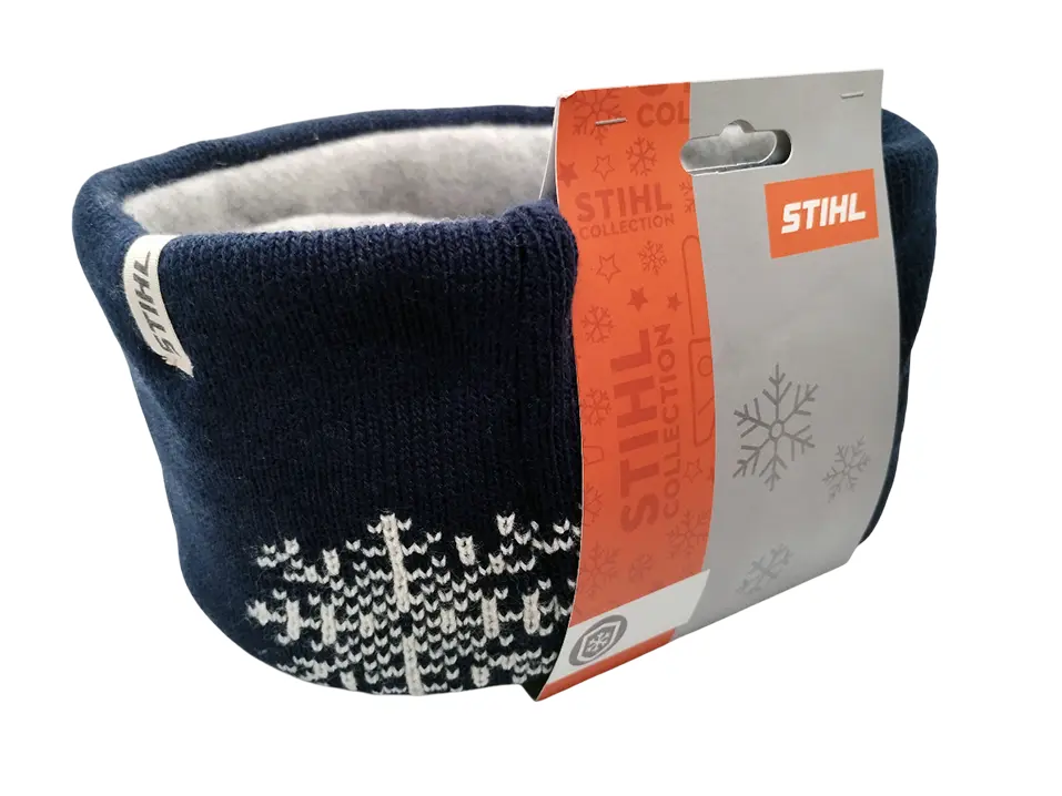 Tour de cou bleu foncé et gris avec motifs jacquard de tronçonneuses STIHL et flocons. Polaire sur la face intérieure. Comporte une petite étiquette avec logo STIHL. Ce bonnet pas cher et au design hivernal et sobre constitue une bonne idée de cadeau d’anniversaire ou de cadeau de noël pour les professionnels de la motoculture.