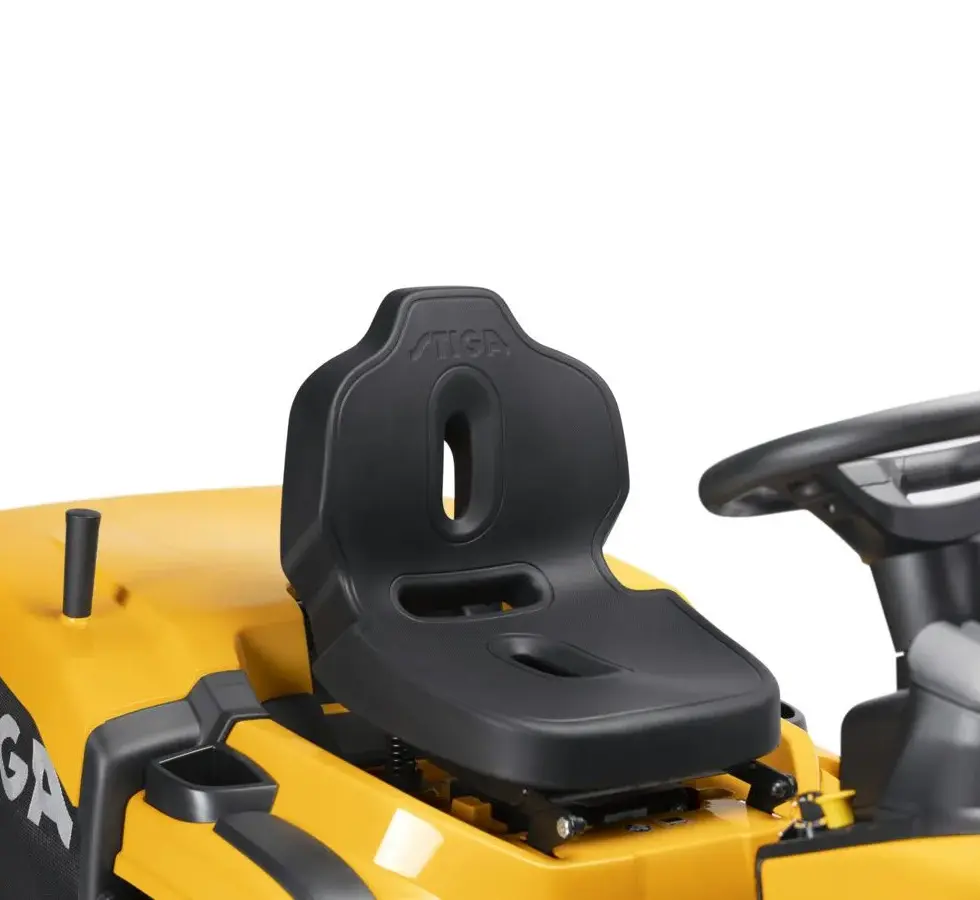 Au-delà de ses performances brutes, la tondeuse autoportée Stiga Estate 384 a été pensée pour offrir un confort optimal à l’utilisateur. Son siège ergonomique réglable avec dossier haut permet une posture agréable même lors des longues sessions de tonte. Le volant à prise souple et le tableau de bord intuitif renforcent encore cette sensation de contrôle et de confort.