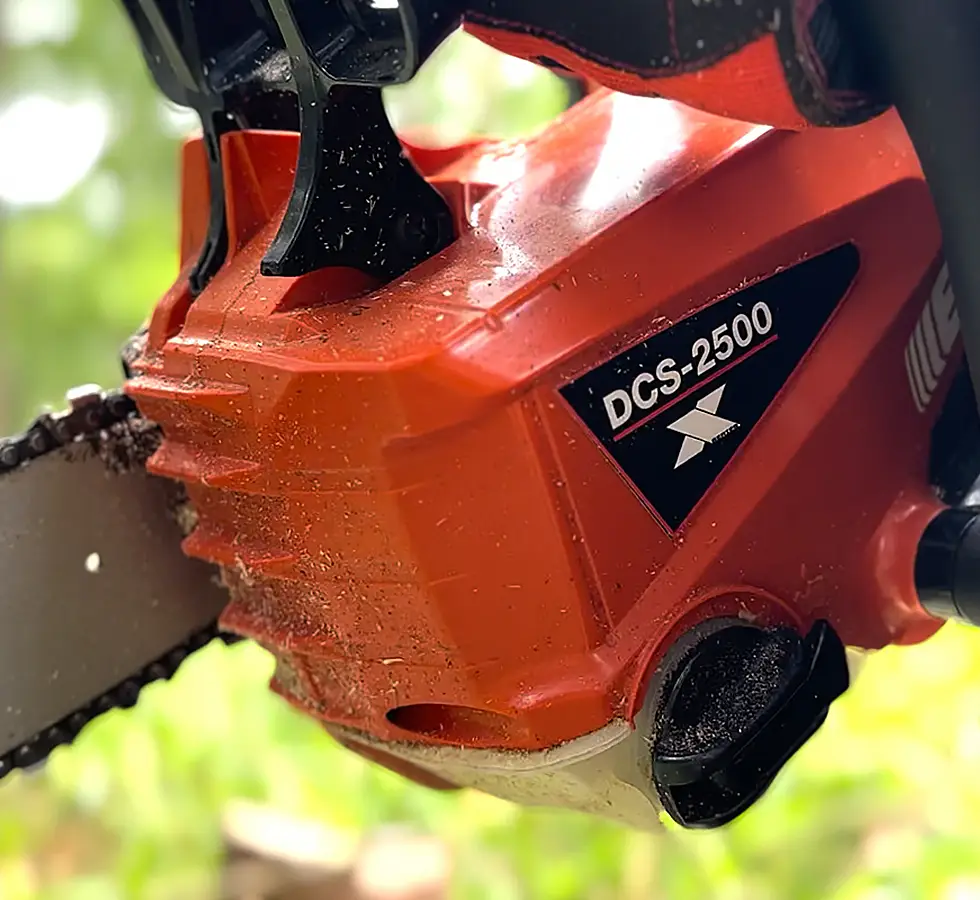 La Tronçonneuse à Batterie DCS 2500 intègre un moteur électrique sans balai haute efficacité, offrant une puissance comparable à une petite tronçonneuse thermique tout en réduisant les vibrations et les nuisances sonores.
